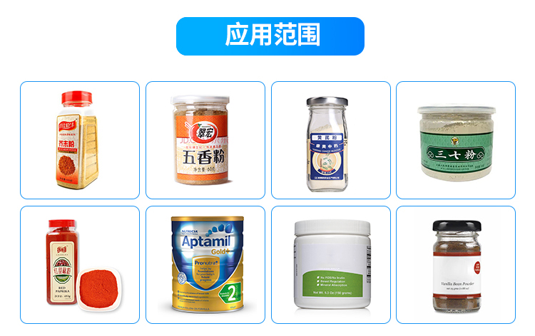 自動定量粉劑灌裝機該機是一種經濟型粉劑和小顆粒自動灌裝機,可以完成瓶的自動定位,灌裝和計量。它由一個灌裝頭,一條連接帶和—個定位裝置組成。或步進)電機,PLC和蝕摸屏控制,操作簡便,穩(wěn)定性高。它可以與開瓶器,封蓋機和貼標機結合形成一祭完整的灌裝線。適用于包裝粉末和小顆粒物料,例如粉末,小顆粒,獸藥,葡萄糖,調味品,體飲料,碳粉,滑石粉,農藥等。