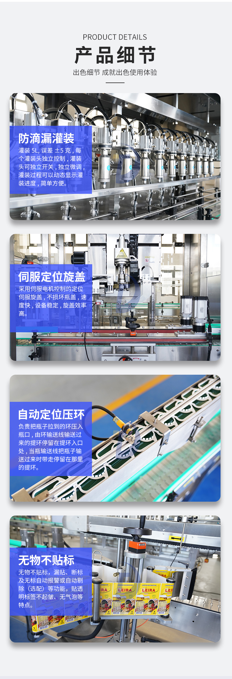 當(dāng)油桶移動(dòng)到灌裝頭下方時(shí),灌裝頭會(huì)自動(dòng)啟動(dòng),開始進(jìn)行自動(dòng)灌裝。在這個(gè)過程中,灌裝頭會(huì)感應(yīng)油桶的存在,并根據(jù)設(shè)定好的參數(shù)自動(dòng)進(jìn)行灌裝。當(dāng)油桶已經(jīng)達(dá)到預(yù)定容量后,灌裝頭會(huì)自動(dòng)關(guān)閉,停止灌裝。