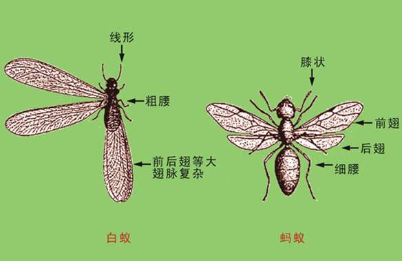 2、從建筑結(jié)構(gòu)上區(qū)別:白蟻的兵蟻和工蟻怕光、大多數(shù)種類的眼睛已退化,除有翅繁殖外,生命活動(dòng)隱蔽,在活動(dòng)和取食的時(shí)候需要構(gòu)筑蟻路、蟻道或泥被、泥線作為遮光掩護(hù)物;但螞蟻不畏光,除極少數(shù)種類外,活動(dòng)時(shí)一般不筑路。